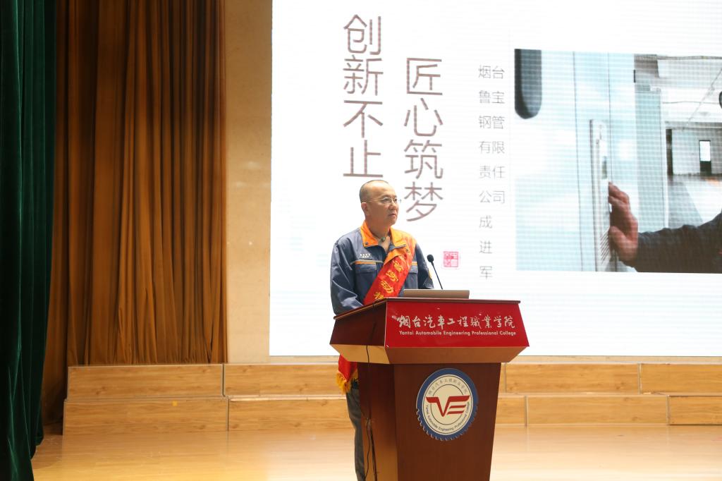 本次“劳模工匠进校园”活动,邀请了烟台鲁宝钢管有限责任公司高级技师成进军、烟台市公安局养马岛海岸派出所警官曹园媛、烟台兴业职业技能培训学校校长张兴业为学院师生进行授课。他们结合自己的工作经历,以朴实生动的语言,讲述在平凡的岗位上铸造的不平凡的事业,诠释着他们“爱岗敬业、艰苦奋斗、淡泊名利、甘于奉献”的劳模精神,为学院师生上了一堂生动的课程。