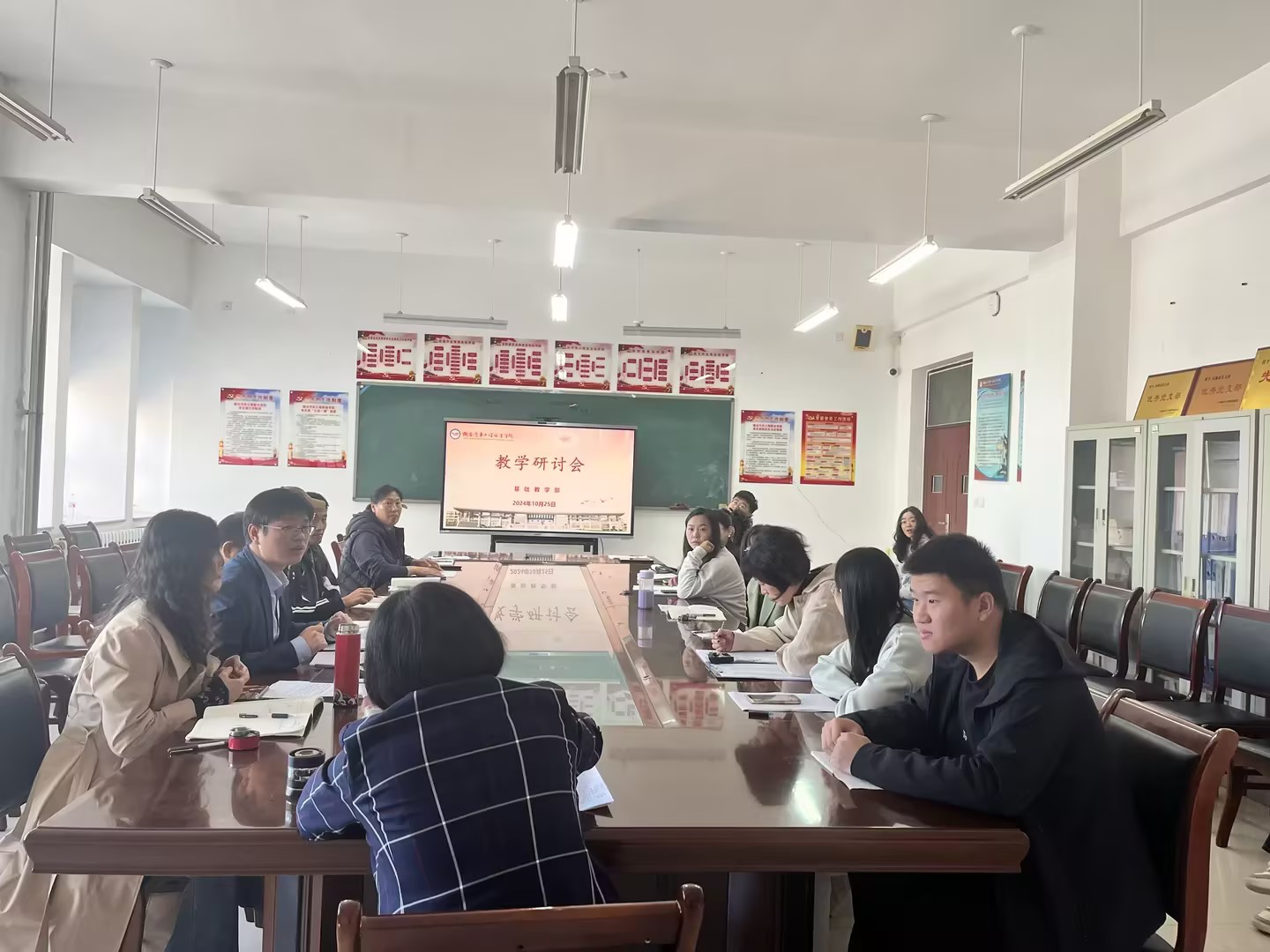 为推动部门教学工作有序开展,扎实推进各教研室在立德树人、课程改革、教学实施等重点工作方面取得新的突破,10月25日,基础教学部在部门会议室召开教学研讨会。本次会议由姜田利科长主持,部门领导、各教研室主任和青年教师参加会议。