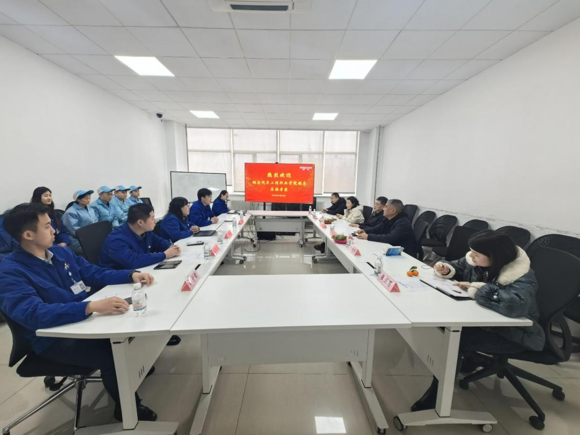 参观结束后,学院领导与潍柴职业大学钟校长等领导就 “职业岗位”标准和“人才培养” 模式进行了全面剖析。双方围绕企业对人才的需求特点、岗位技能要求以及如何优化学校的人才培养方案进行了深入探讨,达成了诸多共识。钟校长详细介绍了潍柴职业大学在人才培养方面的成功经验和特色做法,为Beat365中文官方网站提供了宝贵的参考。郭峰院长表示,学校将结合企业需求,进一步调整和优化课程设置,加强实践教学环节,提高学生的动手能力和解决实际问题的能力,努力为企业输送更多高素质复合型人才。
