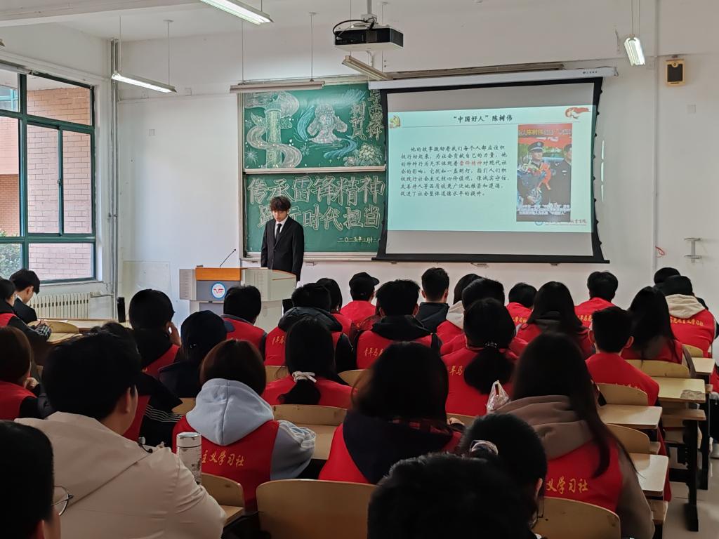 为深入学习贯彻习近平总书记关于弘扬雷锋精神的重要论述,进一步学习和弘扬雷锋同志的先进事迹和崇高精神,引导广大师生成为新时代雷锋精神的传播者、弘扬者和践行者,在第62个“学雷锋纪念日”到来之际,青年马克思主义学习社举行以“传承雷锋精神,践行时代担当”为主题的宣讲活动。