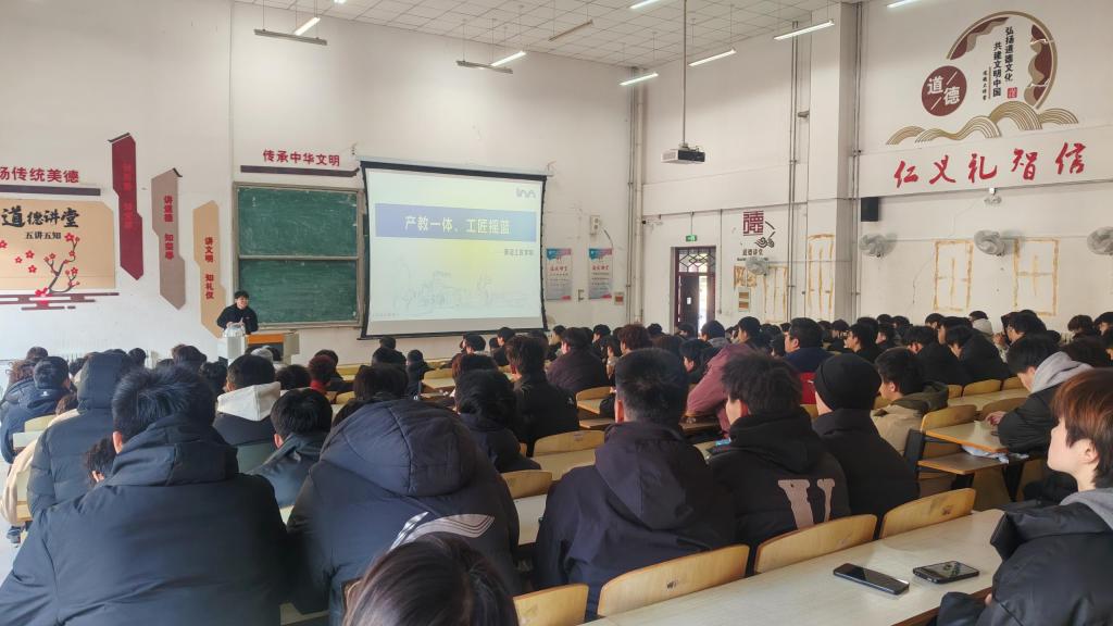 宣讲过程中,豪迈集团宣讲团围绕工匠班组建核心,全面解读班级培养模式、课程设置及学习形式,明确工匠班学生将兼顾专业基础学习与企业定向课程实训,向同学们传递行业前沿技术与岗位实操要点;入职后将享受专属岗位晋升通道、定制化培训及优厚薪资福利,清晰展现工匠班岗位核心优势。宣讲团队还结合企业发展历程、产业布局及行业前景展开分享,解答学生关于岗位适配、职业发展、实习实训等疑问,引导学生结合自身规划理性选择,进一步激发学生参与工匠班的积极性。