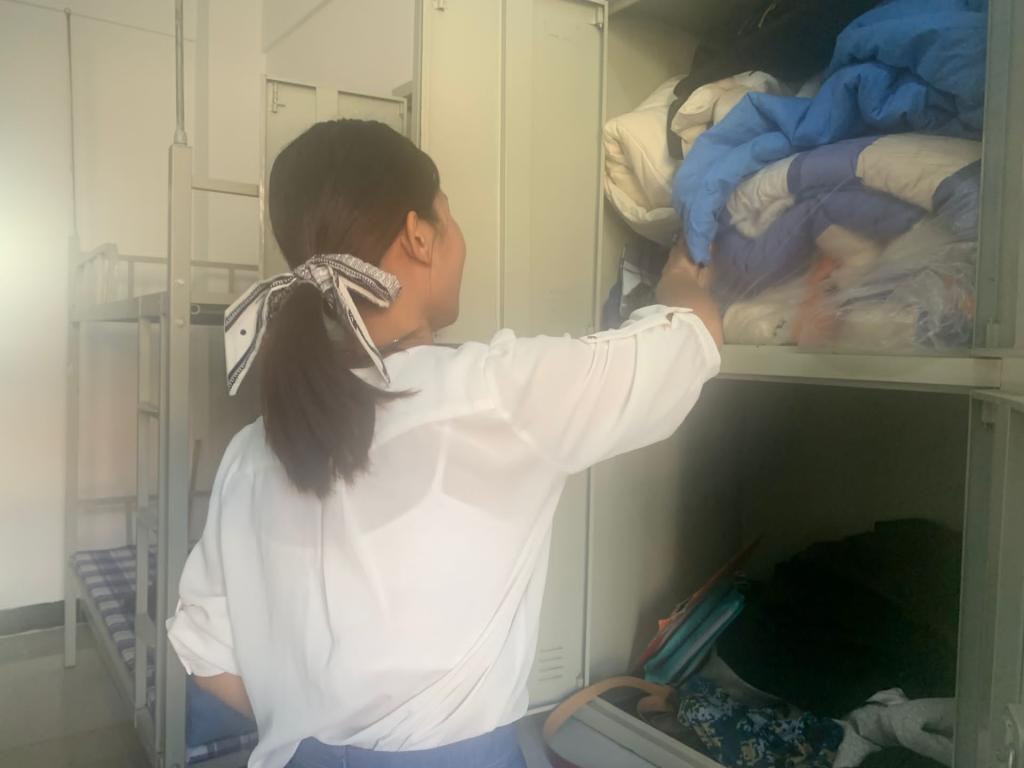 首先,于克丽科长带领全体班主任对学生宿舍进行逐层、逐间清查,详细检查学生宿舍的电线、易燃易爆品及其它安全问题,对发现的安全隐患问题及时上报。随后,在基础教学部黄一飞老师的督导下,各班主任对学生宿舍墙面、柜面的贴纸等进行检查,主要查看其是否符合意识形态要求。检查结束后,班主任老师又与宿管员进行交流,进一步了解学生的宿舍纪律、宿舍卫生等情况。