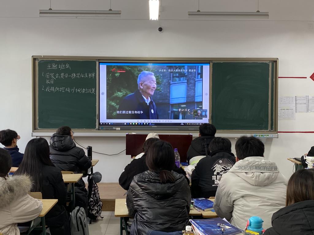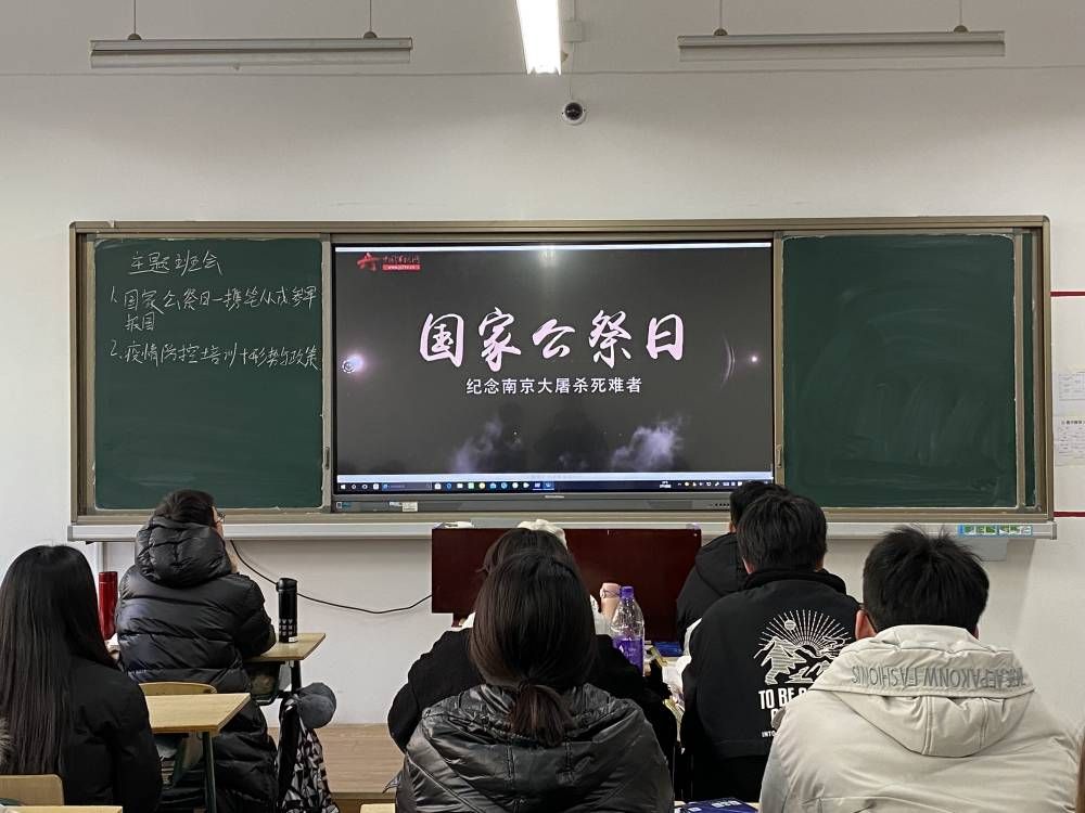 各班级班主任在主题班会上,通过丰富的历史文献、图片、影像资料,向学生讲述震惊世界的“南京大屠杀”的知识。历史让我们知道了我国设立国家公祭日的意义,对死难的同胞致以深切地哀悼,向我们揭示了战争的残酷性,同时教育我们时刻告诫自己“勿忘国耻,刻苦学习、落后就要挨打”,珍惜今天的和平与幸福生活。同时为同学们作了征兵政策解读,鼓励大家积极响应党和国家的号召,在练兵场上绽放青春力量。退伍大学生退伍不褪色,也从为什么参军,参军带来的变化,体检的要求及政策补贴等四个方面向同学们作了详尽的介绍,并耐心地解答了同学们的疑惑和问题。