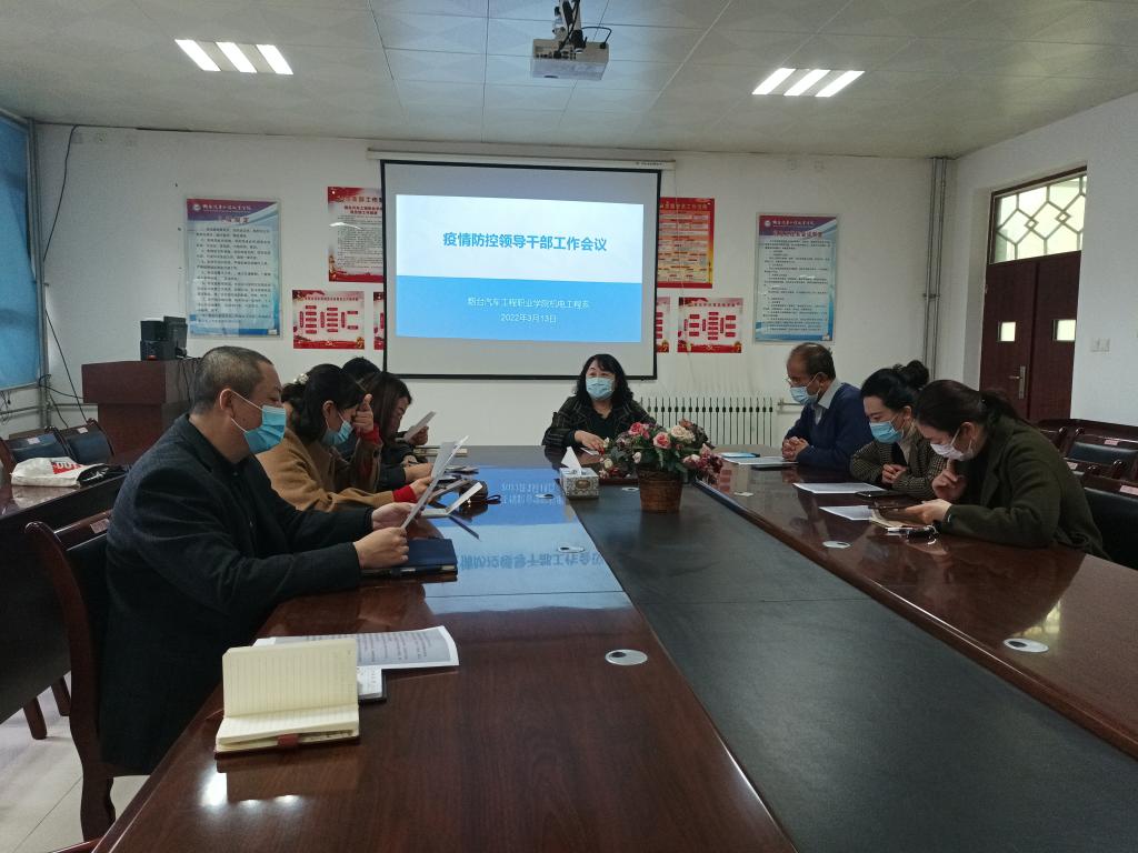 3月13日下午,机电工程系在会议室召开全系干部紧急会议,对疫情防控工作进行再部署、再落实。