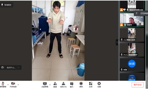 3月17日以来,全体体育教师充分利用学习通、腾讯会议等平台进行线上教学,认真组织好每一堂课,亲自示范每一个动作,通过共享屏幕、视频连线方式对学生的动作加以指导、纠正。同时,为了调动学生运动的积极性,体育教师还采用交流讨论、分享运动感受、小组线上比赛等互动形式,激发学生的学习兴趣,缓解学生因疫情而带来的负面情绪。