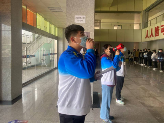 在这些学生志愿者当中,学生会以及班级干部处处以身作则,服从组织安排,时刻不忘发挥模范带头作用,勇做时代的奋进者、疫情下的“守护人”,以青春的臂膀担起抗疫的使命。他们的身影遍布校园,他们克服疲劳,连续作战,分工协作疏通核酸检测人员通道、维持现场秩序,他们在宿舍门口提醒大家戴好口罩做好防护,这些工作给医护工作人员减轻了大量负担,为全系师生防疫提供了安全保障。学生干部马智杰说:“烟台疫情突然爆发,暂停线下授课,校园半封闭管理,开始全员核酸检测......这是第一次让我感觉疫情离自己这么近,同时也让我产生了紧张、恐慌的情绪,但疫情就是命令,防控就是责任,作为学生干部,我深知自己该以身作则,响应学校号召,于是我积极加入学校抗击疫情志愿者队伍中,为学校抗疫贡献自己的力量”。学生入党积极分子、学生会干部田涛说:“面对严峻的疫情形势,入党积极分子应该以党员的标准严格要求自己,勇于担当、甘于奉献,让担当成为学院同学平稳战‘疫’的‘定心丸’”。他们是学生志愿者,也是机电工程系学子中的一分子,在抗击疫情最关键的时刻,以青春之我耀信仰之光。