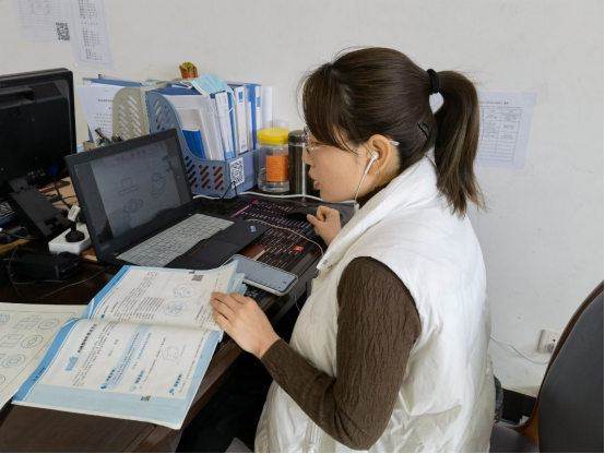 一个人的讲台,激情饱满的授课,高效的云端互动……郝杰老师的课堂只是机电工程系20余名驻校教师线上教学的缩影。