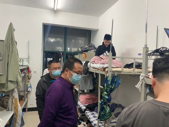 李主任和陈科长对每个宿舍一一进行了走访,亲切地和同学们进行交谈,了解大家的线上学习情况、日常生活状况、心理状态以及遇到的困难和问题等,对同学们提出了四点要求:一是,要严格遵守学院疫情防控要求,积极配合学院疫情防控工作部署,按要求时间进行核酸,不私自翻墙出校,不在校园内聚集,随时戴好口罩;二是,要逐步适应网课学习,加强与任课老师的线上互动,提升个人自我管理能力,注意宿舍卫生、通风和用电安全;三是,要保持积极乐观的心态,加强体育锻炼,提升自身免疫力;四是,提倡正规渠道反映问题,特殊时期将心比心、互相理解,不信谣、不传谣。