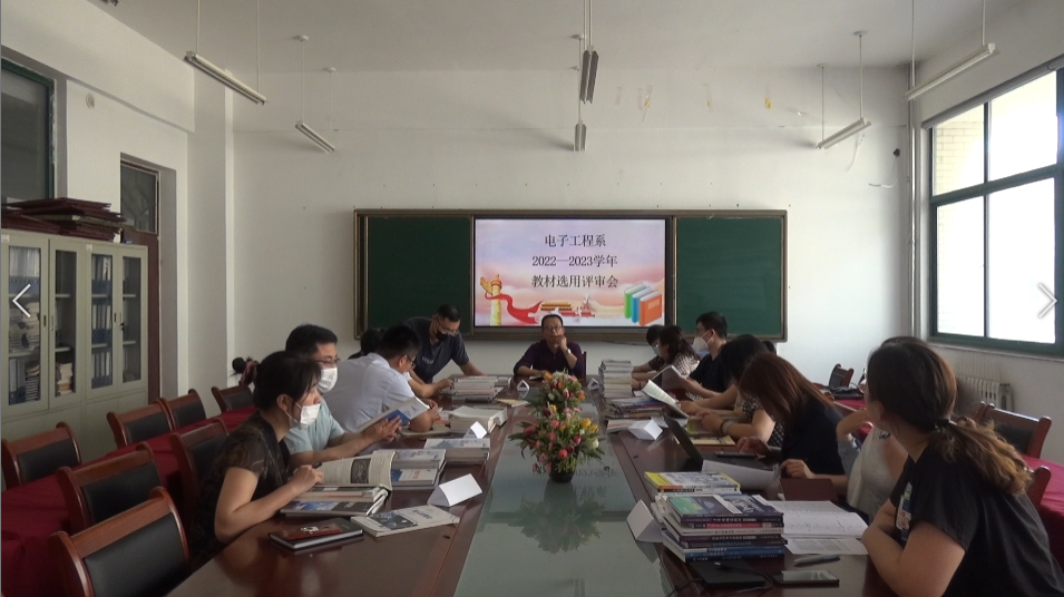 为进一步落实教育部《职业院校教材管理办法》、《普通高等学校教材管理办法》和《山东省教育厅关于加强职业院校教材管理工作的通知》要求,按照《Beat365中文官方网站教材管理办法(修订)》([2021]27号)和《Beat365中文官方网站电子工程系教材管理办法》相关规定,为进一步规范和加强我系教材管理,严格审查教材的质与量,确保优质教材进入课堂,全面提高教学质量、激发学生学习兴趣,6月1日下午,在电子工程系会议室召开2022—2023学年教材选用评审会,针对各专业负责人提报的2022-2023学年征订教材进行评审。系部教材选用工作小组全体委员参加评审会,系主任、系教材选用工作组组长李秀敏主持。