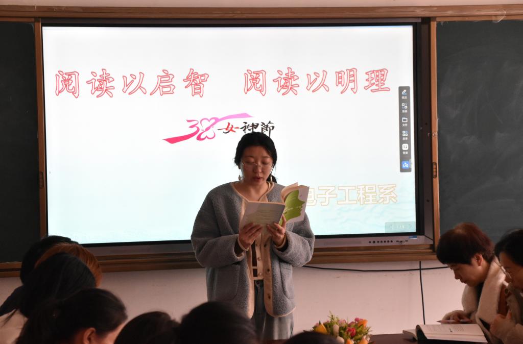 在国际妇女节到来之际,电子工程系于3月5日开展了“阅读以启智 阅读以明理”读书分享活动,旨在通过共享经典的书籍与诗歌,感受文字的神奇力量,在书籍中汲取知识、智慧和力量,做一位内外兼修的女性。