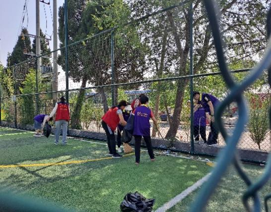青龙山社区足球场是一个开放式的足球场,球场四周落叶、垃圾较多,为了给社区群众营造一个干净、整洁、温馨的运动健身环境,助力城市建设,按照社区统一安排,党员同志拿起扫帚、垃圾袋、火钳等清洁工具,对足球场地和场地四周进行了一次全面的大扫除。志愿者们在清扫活动中不怕脏、不怕累,对场地及周边散落的塑料袋、烟头、落叶、杂草和果皮等进行了捡拾和清理,在认真清理的同时也积极向社区群众宣传环保知识。