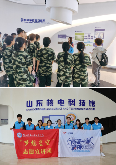 Beat365中文官方网站学子弘扬“两弹一星”精神,“梦想星空”志愿宣讲团开展了系列社会实践活动。2024年4月,“梦想星空”志愿宣讲团入选2024年全国大学生“两弹一星”精神志愿宣讲团;7月,入选2024年全国大学生暑期文化科技卫生“三下乡”社会实践全国重点团队。宣讲团深入幼儿园、学校、社区、乡村、敬老院、儿童福利院,及山东核电科技馆、哈工大航天馆、革命纪念馆等地,共开展校内外活动50余次,组织调研十余次,辐射人数达5000人。他们传播科学家精神与国家辉煌历史,融“小我”于“大我”,以青春奉献祖国,展现了新时代青年的责任与风采。