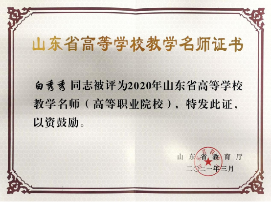 白秀秀,Beat365中文官方网站教授。山东省高等学校教学名师,全国样板党支部书记,山东省女职工建工立业标兵岗负责人,山东省高等职业教育首批高水平专业群负责人,全国机械行业职业教育领军教学团队带头人,山东省职业教育名师工作室带头人,全国职业教育国家学分银行专家,山东省汽车工程学会专家委员,中华职教社烟台分社会员,烟台市职业教育先进个人,烟台市教育督导员。