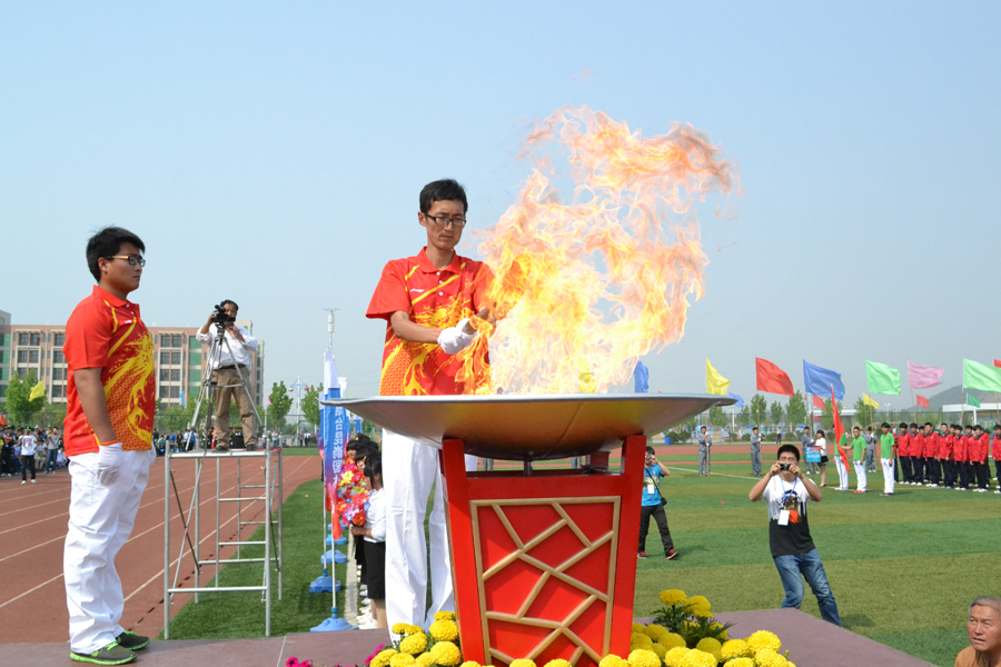 运动会火炬手点燃火炬