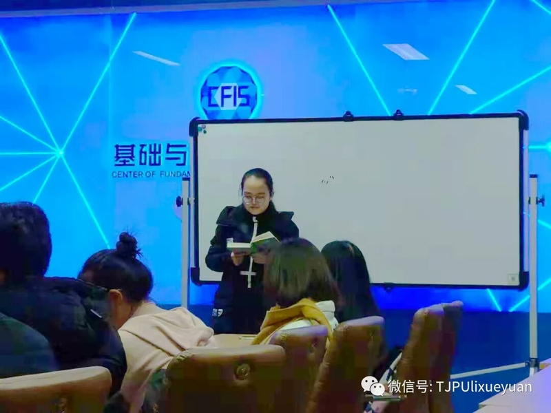 第二位是学习委员汪千慧,她主要给18级学委分享了在大一过程中有哪些学科竞赛值得参与。