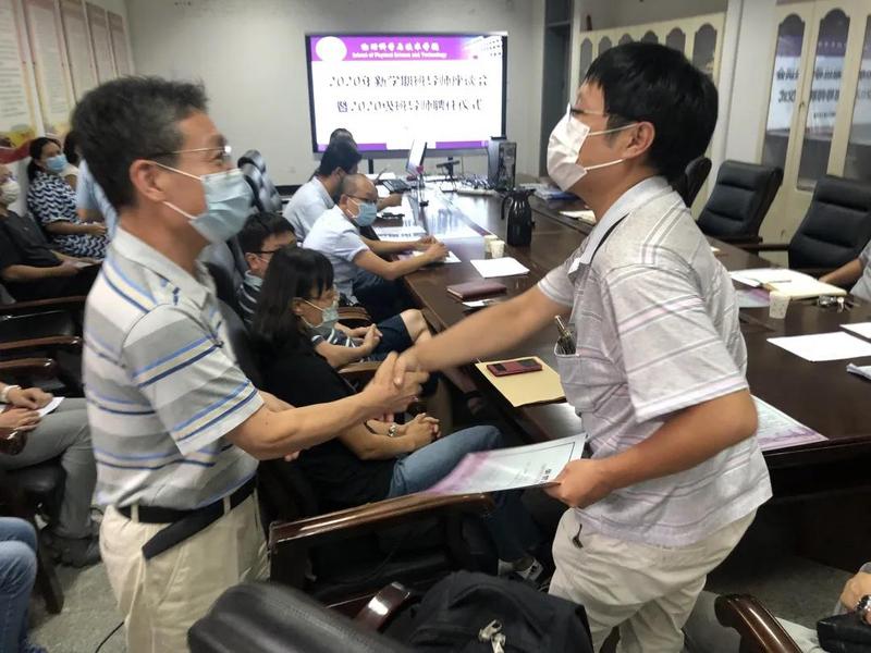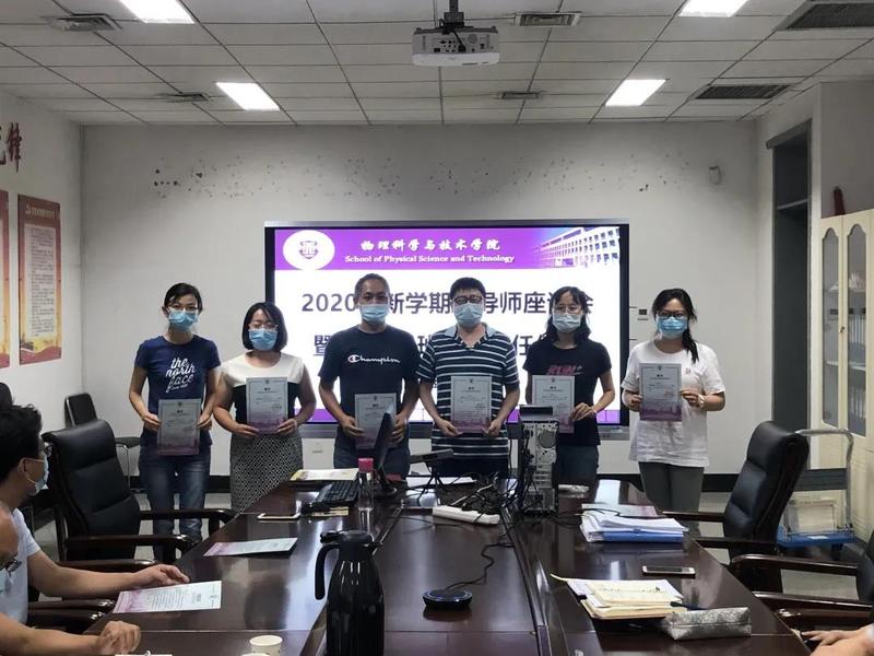 2020年9月10日14:30,物理学院B305会议室举行了2020年新学期班导师座谈会暨2020级班导师聘任仪式。学院党委书记成玲、院长(副书记)张海明、副院长廖帮全、副院长郭津博、学院党委副书记金笛以及学院全体辅导员、班导师参加了此次会议。