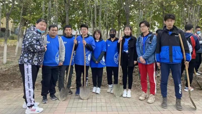 仪式结束后,老师和同学们领取了劳动工具,共同参与了植树的过程。