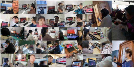同时,学院各教工党支部和学生党支部党员结合实际情况,通过手机、电脑、电视等多种形式进行观看,有的教师党员在家中通过电视机与家人一起观看直播,有的党员利用中午吃饭休息时间进行回看,有的学生党员利用课下时间在实验室、宿舍等地方进行回看,确保了收听收看的全覆盖。