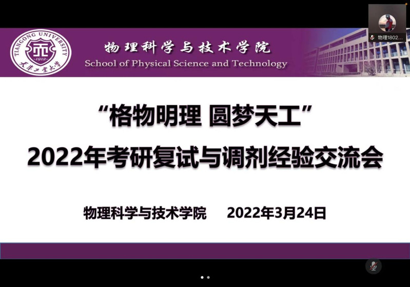 群策群力,同向同行。为切实做好毕业生就业指导与服务工作,3月24日beat365亚洲官方网站举办了主题为“格物明理 圆梦天工”的考研复试与调剂线上经验交流会。学院党委副书记贾彦军,副院长廖帮全,科研办主任陈琮老师、教师代表、全体辅导员以及2018级考研学子参加了本次会议。会议由党委副书记贾彦军主持。