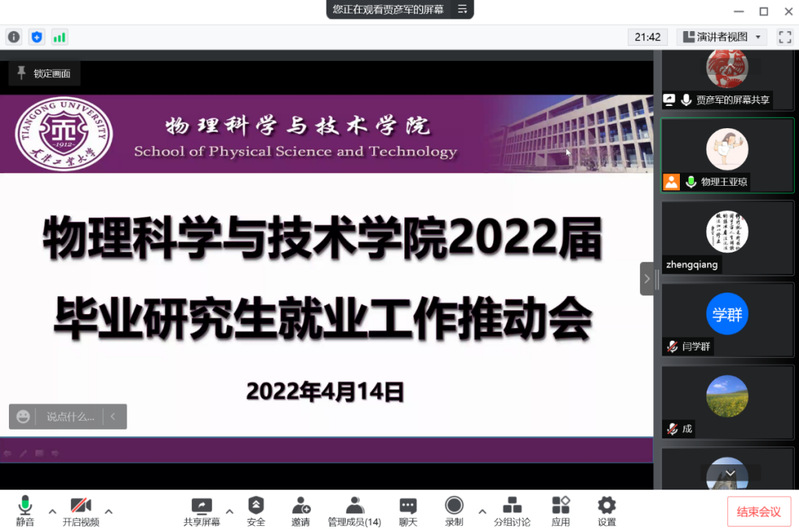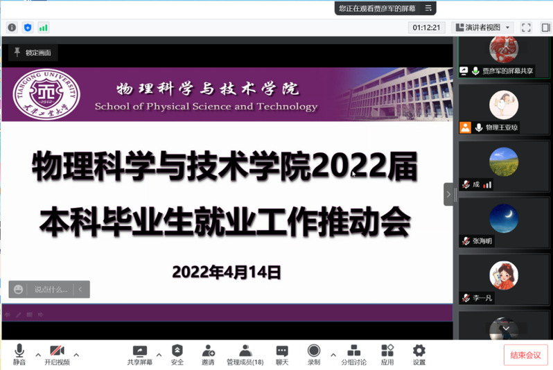 为认真贯彻习近平总书记重要指示精神和党中央、国务院“稳就业”“保就业”决策部署,落实教育部《关于做好2022届普通高校毕业生就业创业工作的通知》的具体工作要求,进一步加强疫情防控常态化下毕业生的就业指导与服务工作,确保毕业生更高质量更充分就业,4月14日,beat365亚洲官方网站在线分别召开2022届研究生及本科毕业生就业工作中期推动会,专题研究部署疫情形势下进一步加强2022届毕业生就业工作举措。学院领导班子、系室主任、毕业班研究生导师、班导师和全体辅导员出席本次会议,会议由学院党委副书记贾彦军主持。