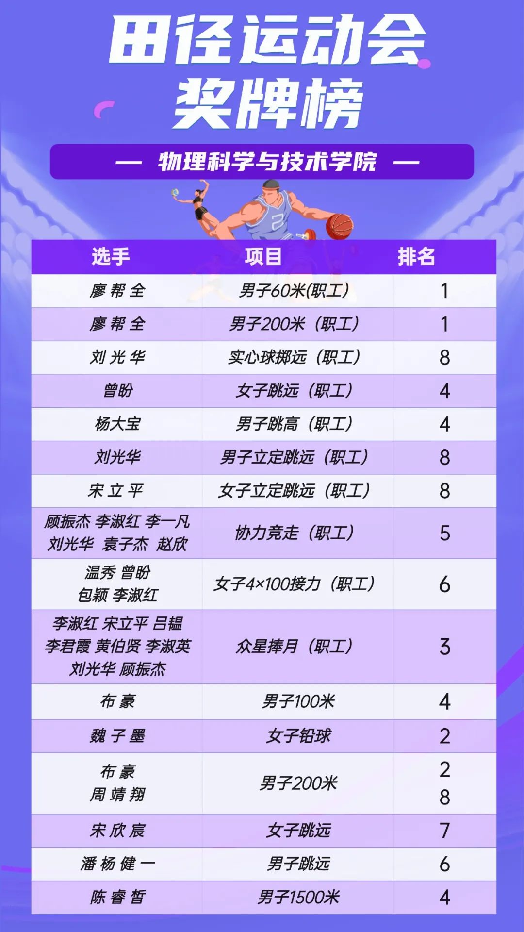 本届运动会beat365师生团结拼搏,积极进取,获得了校精神文明奖及职工团体总分第七名;同时,运动员们为热爱注入力量,为梦想驰骋而上,在本次运动会中也取得了优异的成绩。